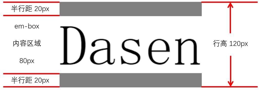由于宋体是一种em-box和内容区域等高的字体,因此借助宋体做个示范,示意图如下: