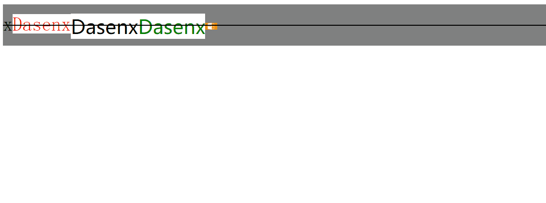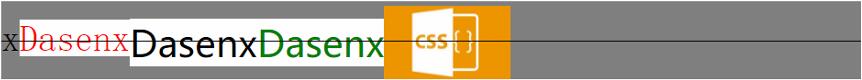 可以看出这一对属性值主要是为了使内联盒子和外部容器中的文本对齐,而它的表现效果自然是和外部容器中文字的字体有关。来尝试一下下面的例子: