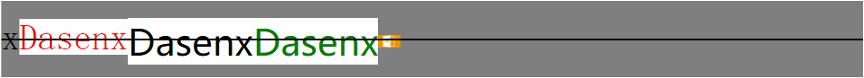 但说了这么多,实际上计算机显示中的基线是不考虑像悬挂基线这种东西的,只按照英文字母的基线来,其他文字的基线就完全取决于字体的设计了,一般就是略高于文字下边沿的位置作为基线,因此,在CSS中我们将要讨论的基线(baseline),你可以完全参照下图:
