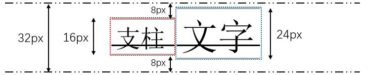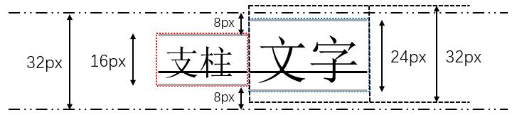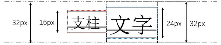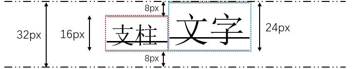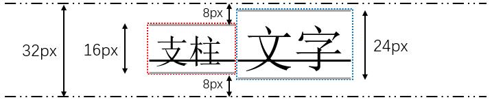 要做到最终渲染出来不多于32px,那么实际上就是要做到支柱和span标签的32px区域重合。